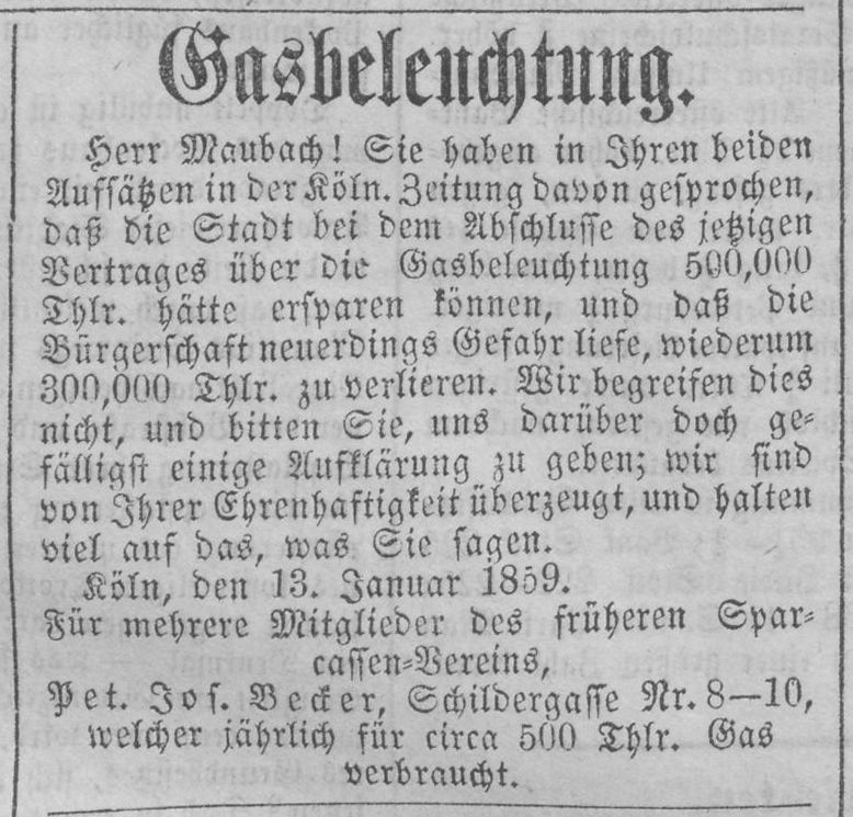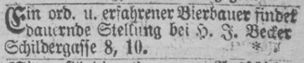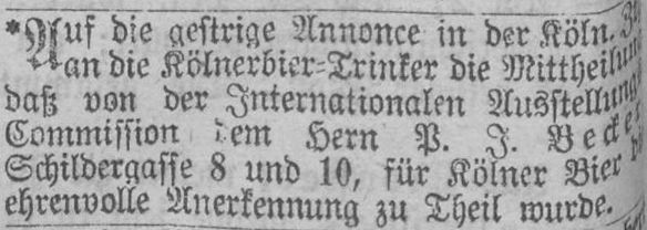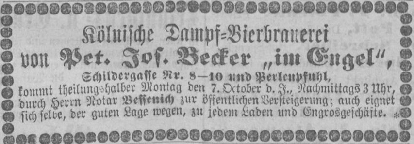 Becker, Bierbrauer aus Köln, unter Aufwendung von ziemlich bedeutenden