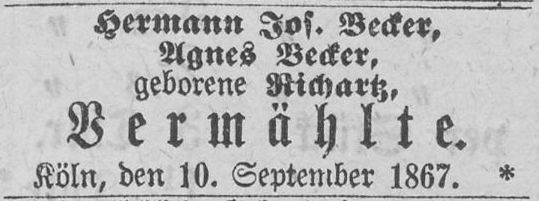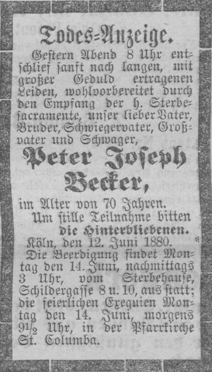 Hermann Joseph Becker für also zweigleisig, zur Schildergasse