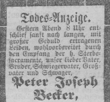 Die letzte bekannte Nennung von Hermann Joseph Becker stammt