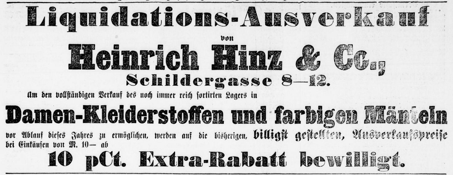 Liquidations-Ausverkauf von Kleiderstoffen und Damenmänteln in der