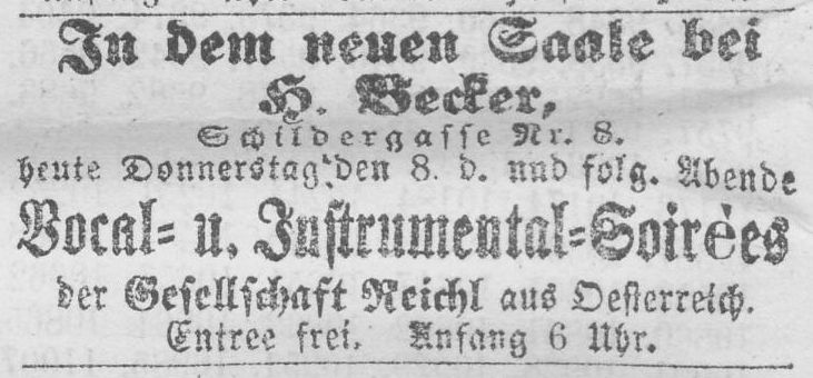 in der Schildergasse Nro. 8 dahier, wird diese Woche hindurch fortgesetzt;