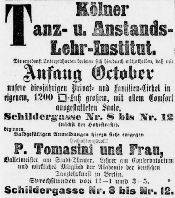 Anzeige des Kölner Tanz- u. Anstands-Lehr-Institut, welches zumindest von
