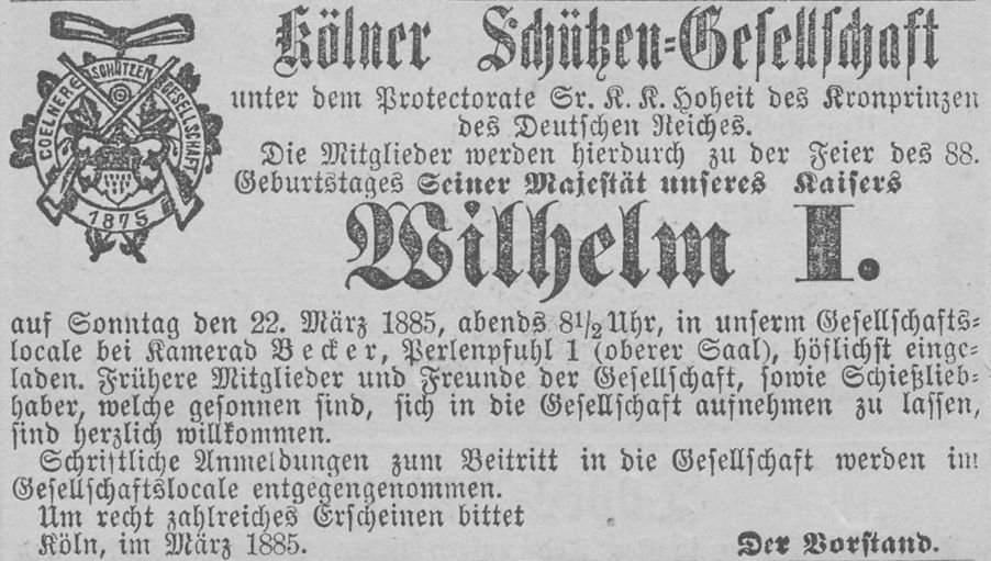 1891 bis 1902 in der Schildergasse 8-12 ansässig war