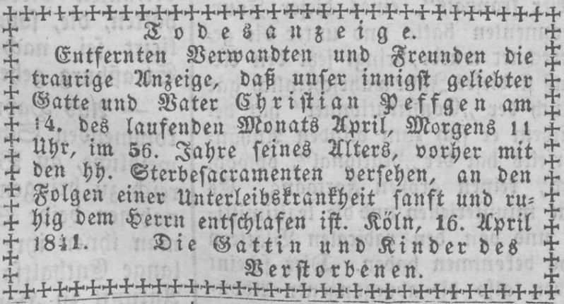 Christian Peffgen, blieb aber trotzdem bis zu ihrem Tod im Jahr 1822