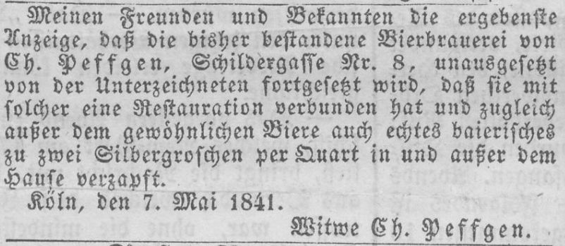 Brauerei "Zum Engel", Christian Peffgen Witwe