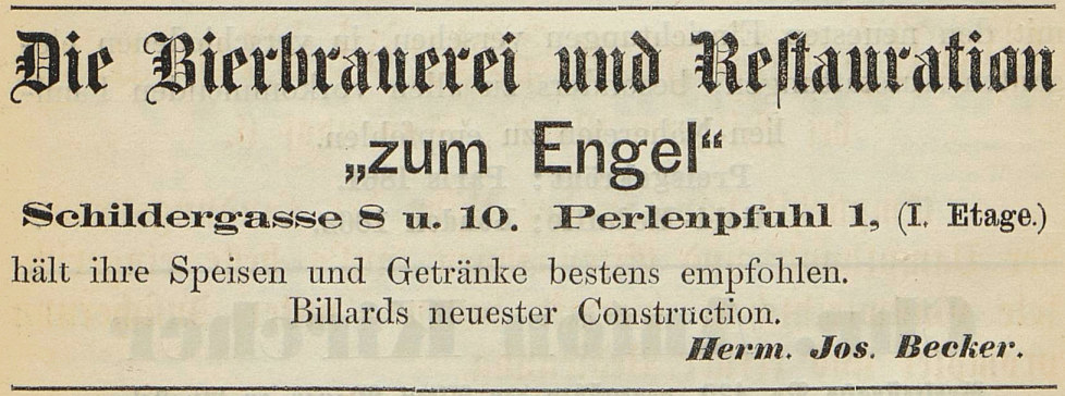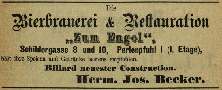 [5, 01.03.1889] „…Bier-Restaurant „Zum Engel“, Schildergasse