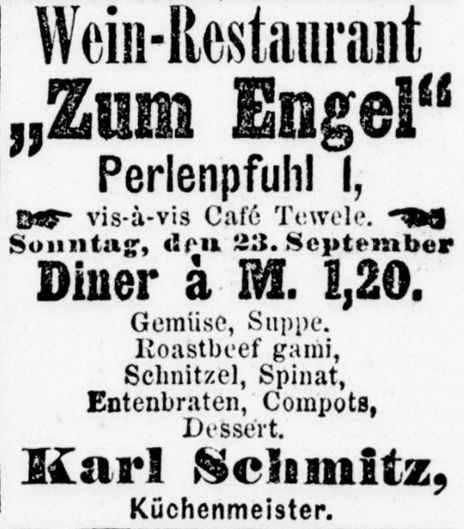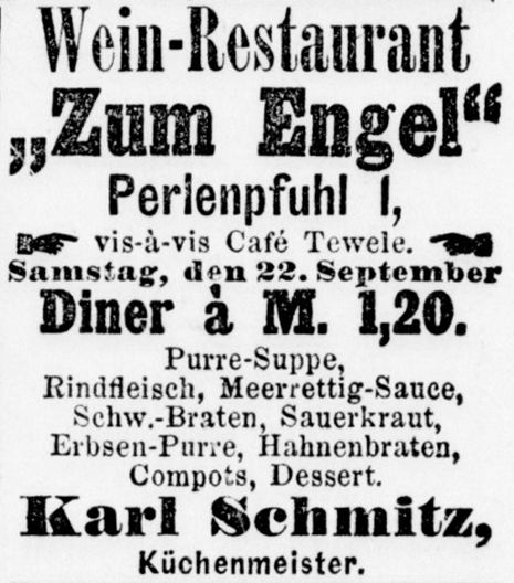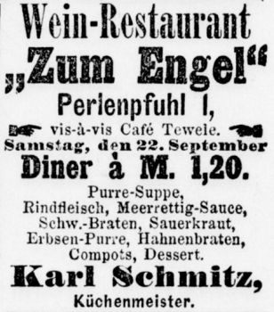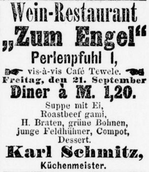 Anzeige des Bier-Restaurant "Zum Engel". Für die Küche des Bier-Restaurants