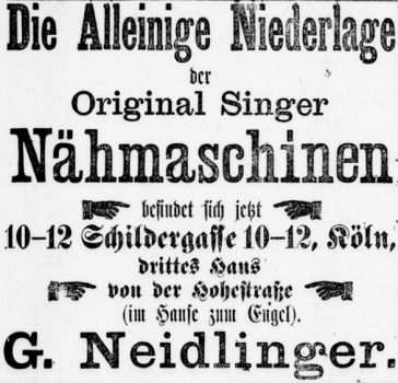 Anzeige der Singer Niederlassung in der Schildergasse 10-12 (im Hause zum