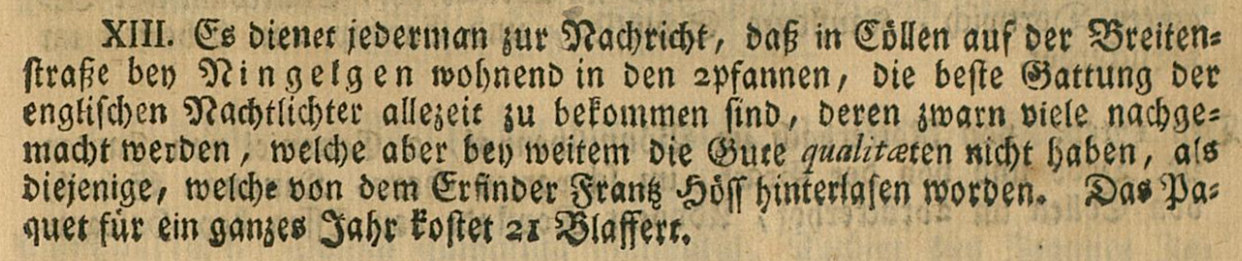 wieder im Kontext von Kerzen. Auch damals wussten die Verkäufer schon gute
