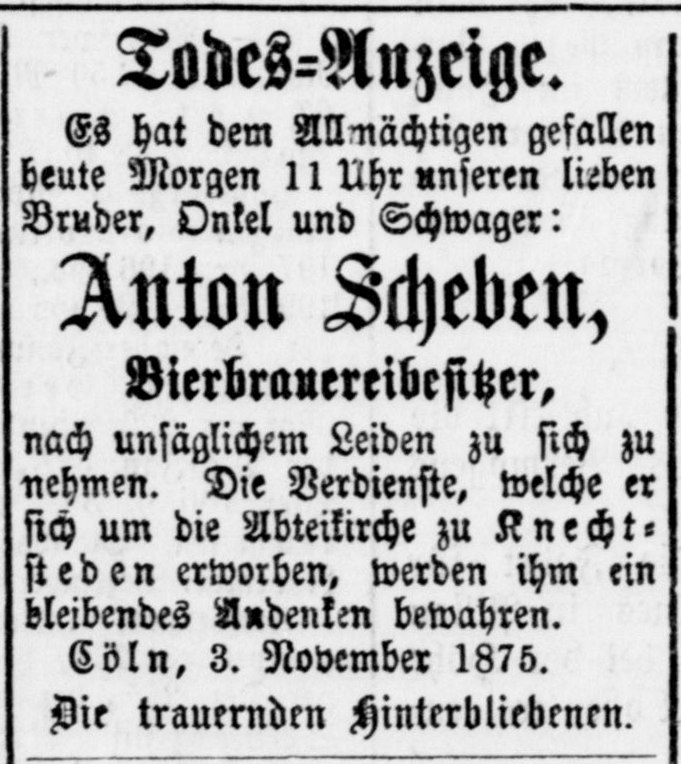 Brauerei ist überwiegend durch einen ihrer Betreiber, Anton Scheben, bekannt