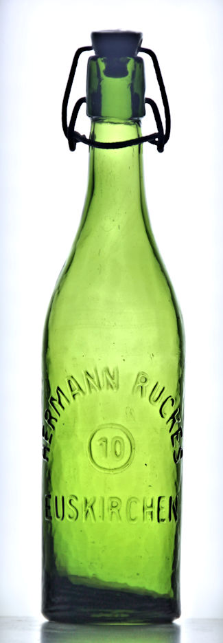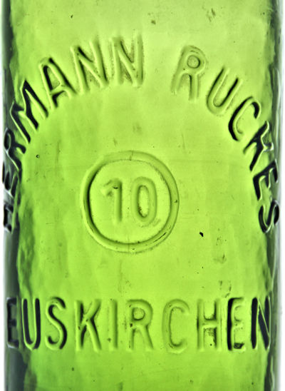 die Angabe auf dem Boden gibt es eigentlich erst ab 1936, dies verträgt sich aber nicht mit der manuellen welligen Fertigung der Flasche |