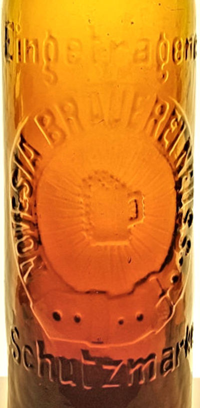 Bogen: "NOVESIA BRAUEREI NEUSS", darin Bierkrug mit Strahlen,