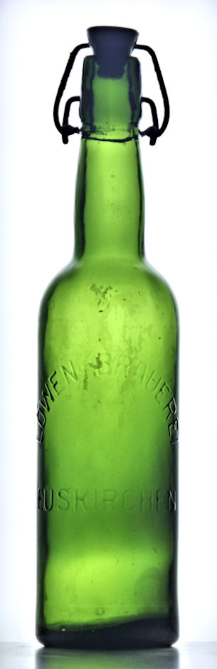 Bogen oben: "LÖWEN-BRAUEREI", darunter gerade: