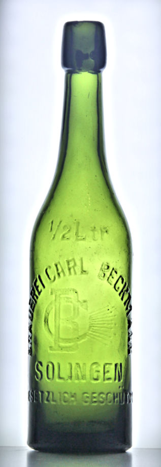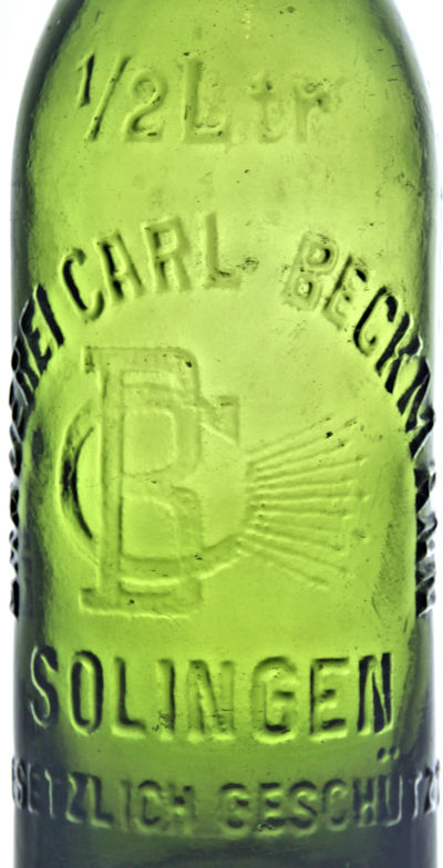 "1/2 Ltr.", darunter Bogen: "BRAUEREI CARL BECKMANN", "CB" Logo