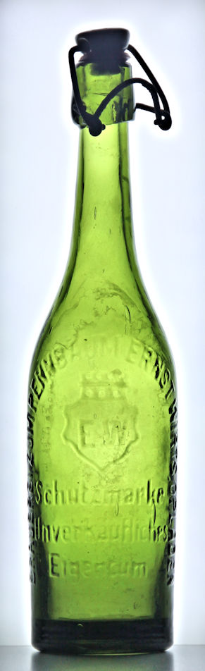 Bogen oben: "BRAUEREI ZUM RENNBAUM ERNST WIRTS