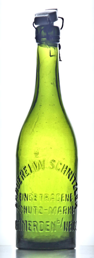Schwarz, Bogen oben: "BRAUEREI W. SCHNITZLER", darunter gerade: "EINGETRAG."