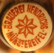 Rot, Bogen oben: "BRAUEREI HENDRICHS", Bogen unten: "MÜNSTEREIFEL",